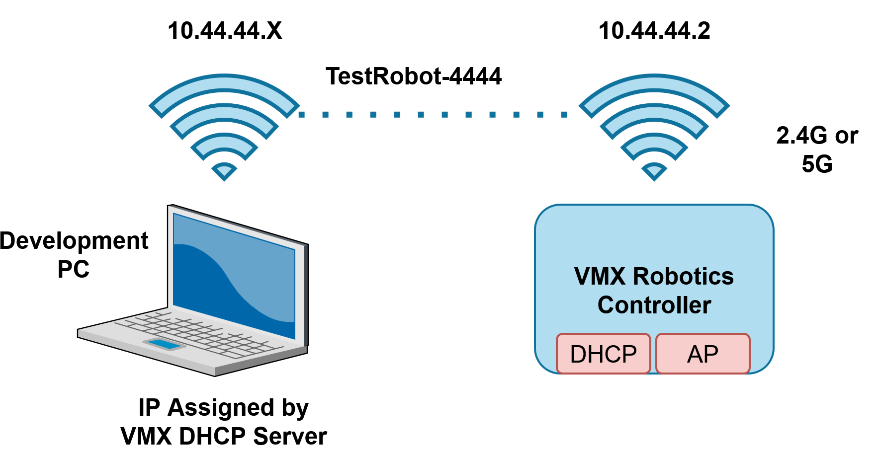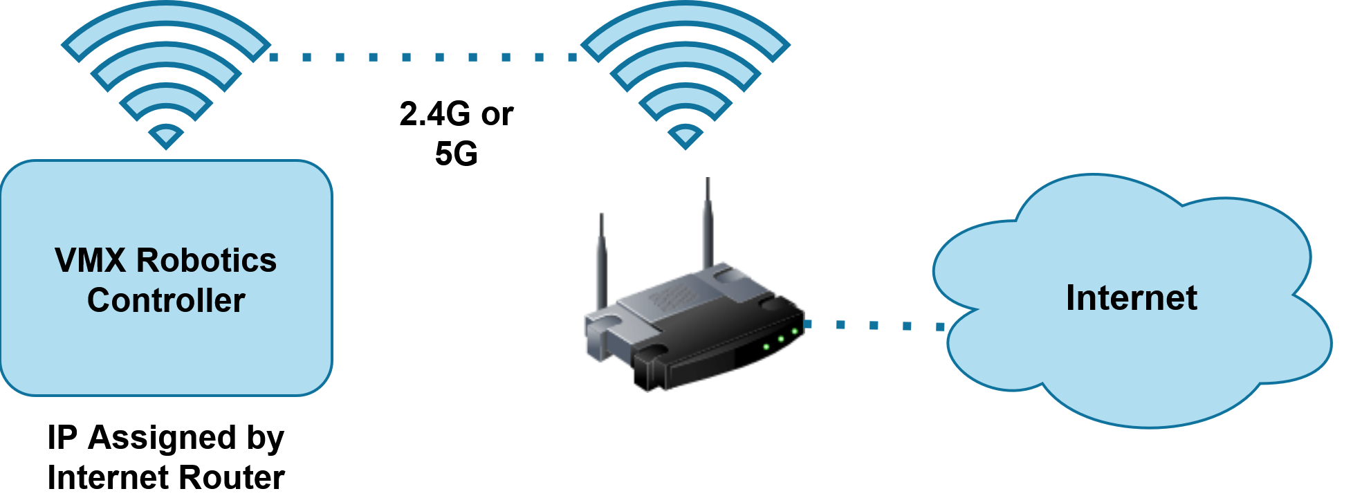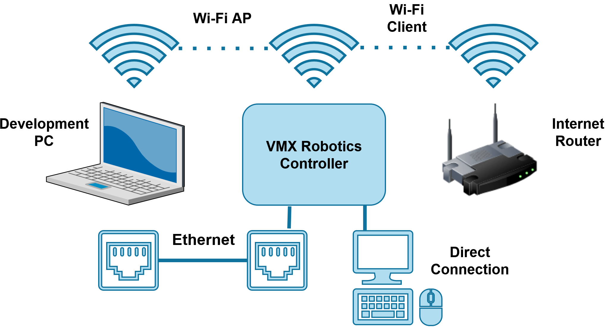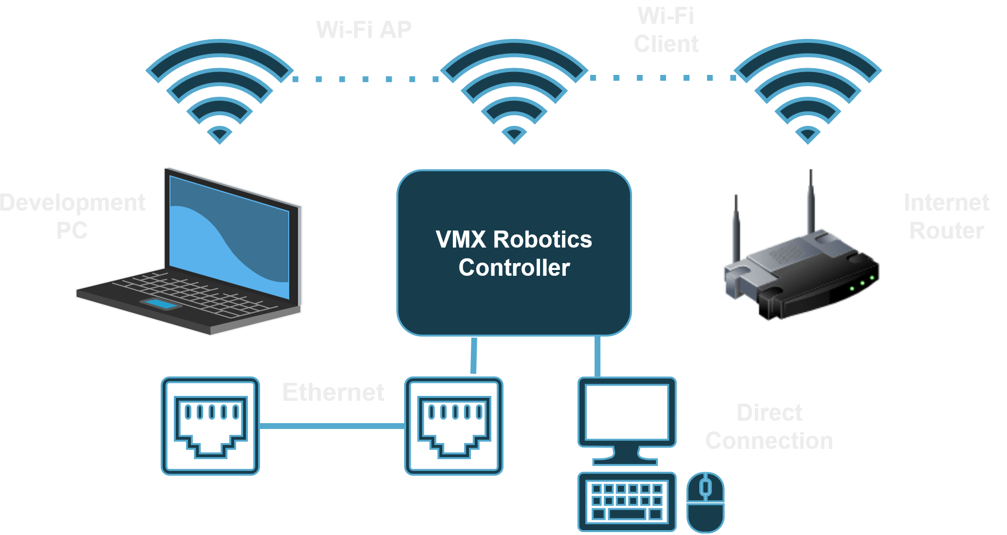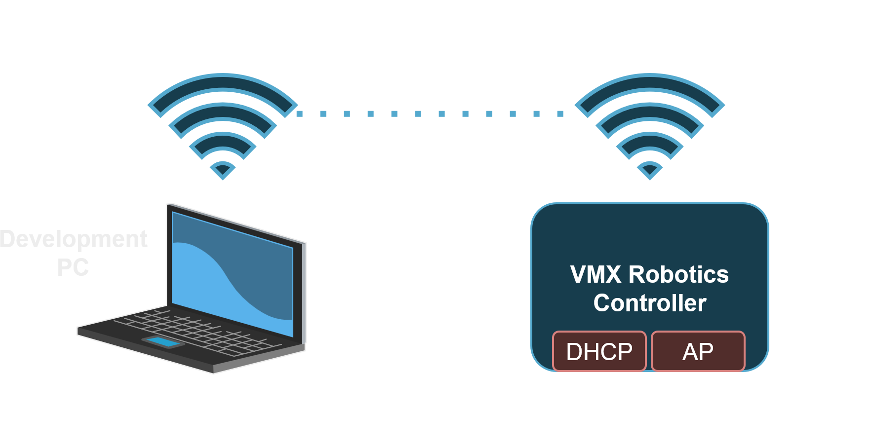 In Wi-Fi AP mode, the VMX creates its own Wi-Fi network. Connect a computer directly to that network.
